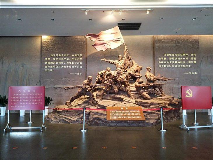 沂蒙革命纪念馆是临沂市2013年十大民生工程之一,由中国工程院院士、中国建筑设计大师程泰宁先生主持设计,设计方案外方内圆,建筑形式简洁朴实,体现质朴高尚的沂蒙精神;暗红色基座稳扎大地,暗示沂蒙精神的革命根基;两组支座承载建筑上部主体,象征着沂蒙精神对革命胜利果实的重要支撑;中间贯穿上下的红色筒体,寓意着沂蒙精神中流砥柱的强大作用。