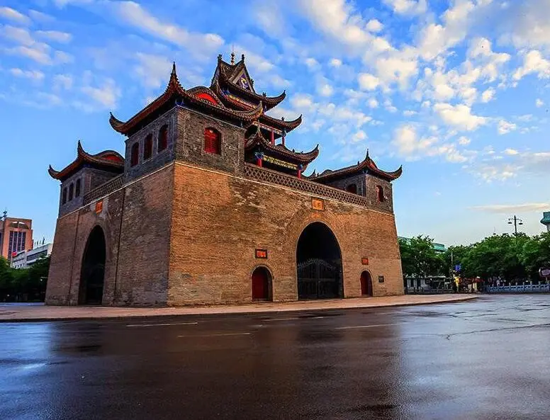 银川鼓楼坐落在银川市解放东西街和鼓楼南北街十字路交叉处的钟鼓楼,又称”十字鼓楼”、”四鼓楼”,俗称”鼓楼”。楼总高 36米,占地576平方米。由台基、楼阁、角坊组成。台基呈正方形,边长24米,高8.5米,用砖石砌筑。现为宁夏银川市重点保护单位。