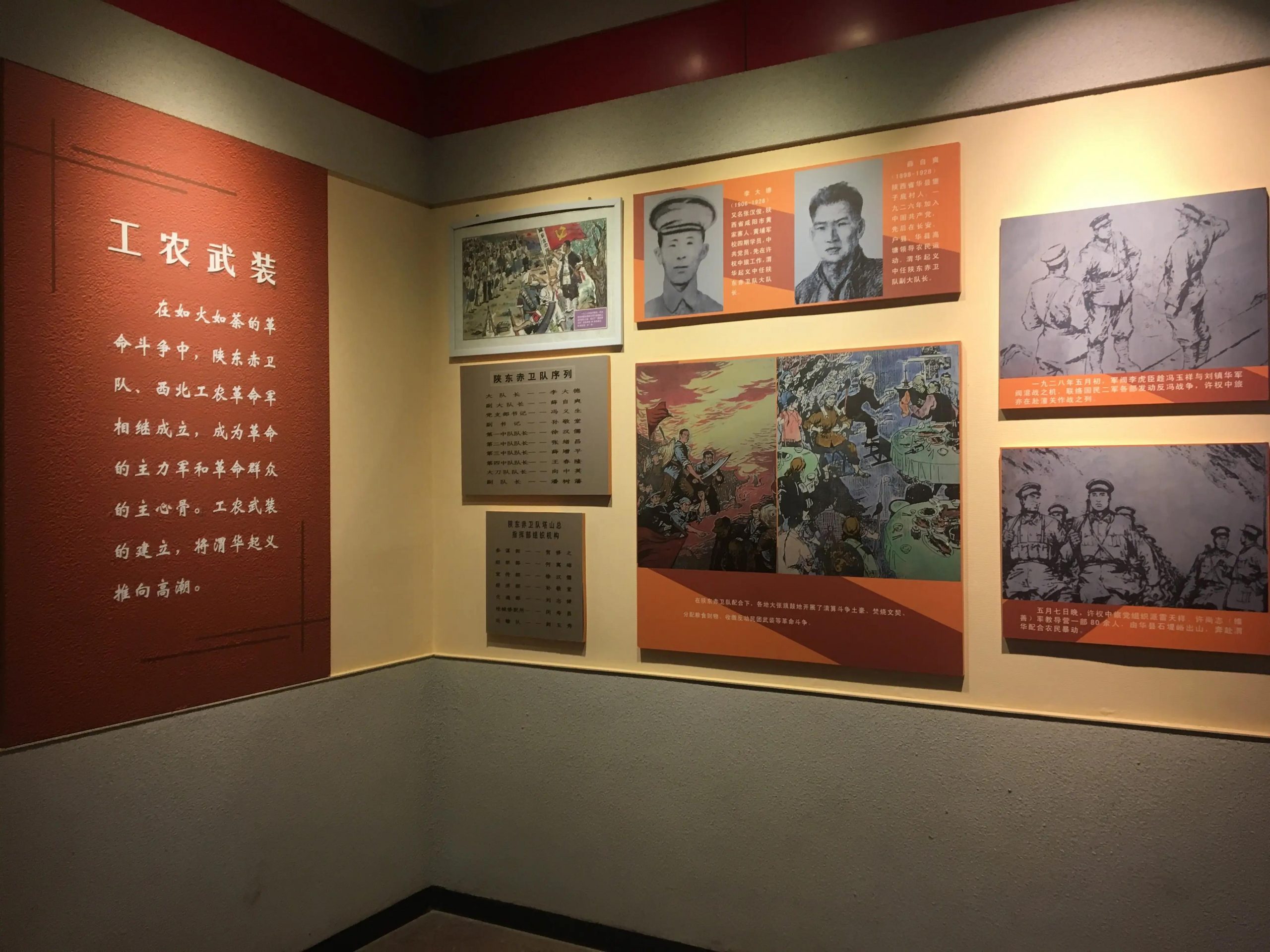 1988年5月1日,渭华起义纪念馆正式开放。主要陈列有西北工农革命军军委指挥部五间厅、砖铺字标语、古槐等, 截至2019年末,渭华起义纪念馆藏品共计有157件/套。