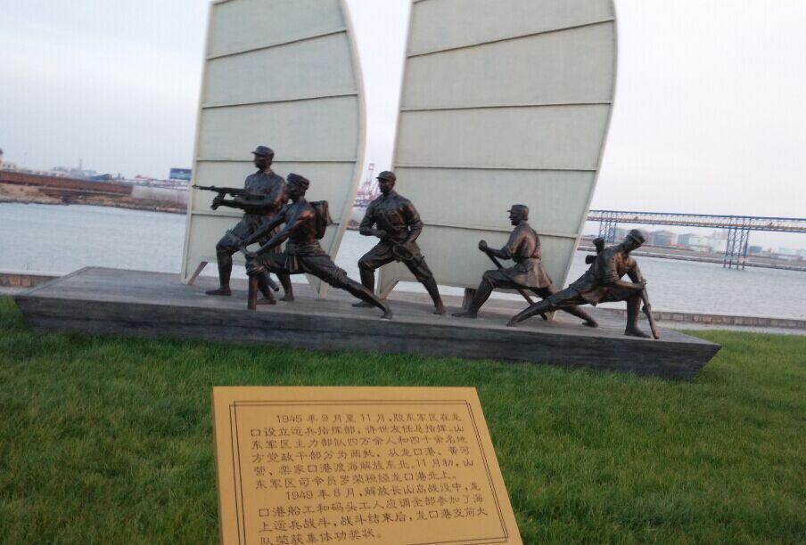龙口港于1914年开埠,1919年建成中国首座钢筋混凝土栈桥码头。依据良好的港口条件和优越的地理位置,龙口港成为山东八路军挺进东北的最主要的起航地之一。为加强兵运工作 ,胶东军区在龙口设立了海运指挥部,司令员许世友亲自坐镇指挥海运工作。龙口港光荣地担负起运送人民军队渡海北上的重任,从9月下旬到11月下旬两个月的时间,数万军政人员从龙口安然无恙地被送到东北,为中国人民解放军收复东北作出了历史性贡献。在秘密的状态下,山东军区部署几万部队,迅速渡过渤海,向东北挺进,这一壮举,开创了人民解放军历史上最大规模的海上战略转移的先例。